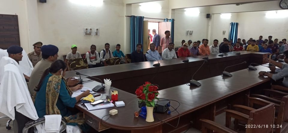 ”अग्निपथ योजना” के विरोध रोकने हेतु जिलाधिकारी एवं पुलिस अधीक्षक ने गणमान्य/सम्भ्रांत व्यक्ति व युवाओं के साथ पुलिस लाइन में की गई बैठक।