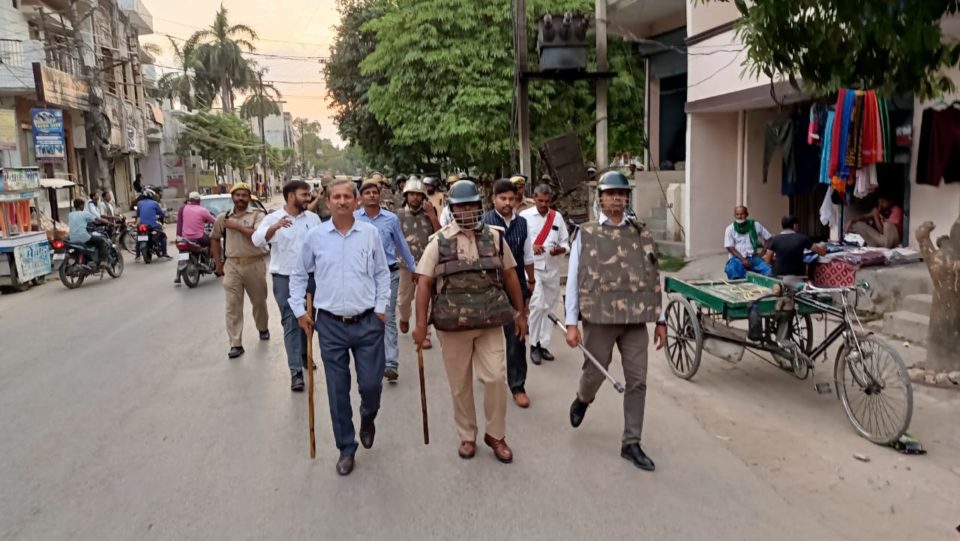 अपर पुलिस अधीक्षक भदोही व थाना/चौकी प्रभारियों द्वारा मय पुलिस बल कानून एवं शांति व्यवस्था के दृष्टिगत किया जा रहा पैदल गस्त।