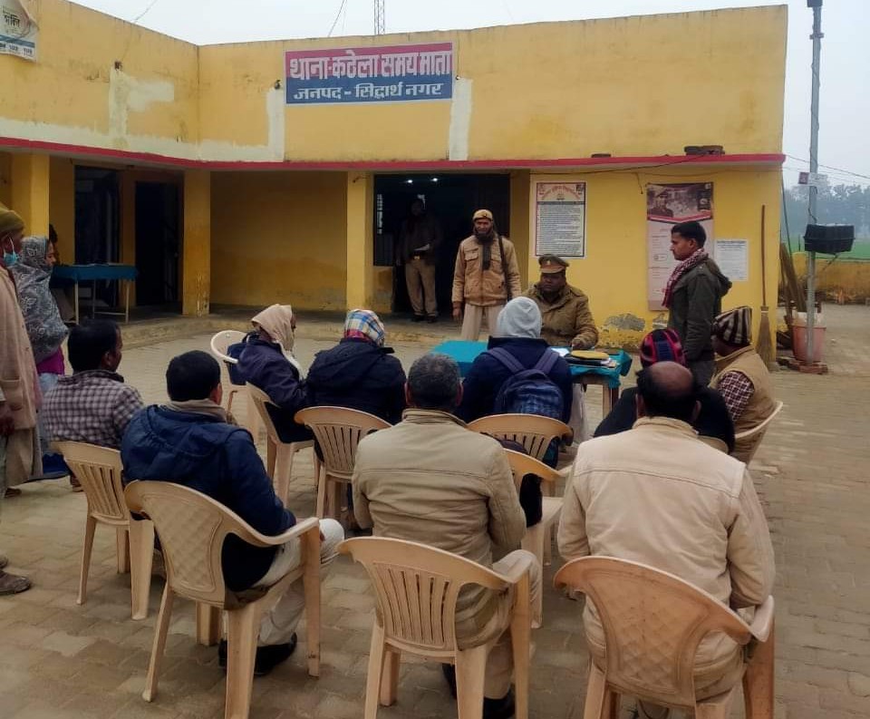 पुलिस अधीक्षक सिद्धार्थनगर डा0 यशवीर सिंह के आदेश के क्रम में तथा अपर पुलिस अधीक्षक सिद्धार्थनगर श्री सुरेश चंद्र रावत क्षेत्राधिकारी महोदय शोहरगढ़ श्री हरिश्चंद के कुशल पर्यवेक्षण में आज दिनांक 08.01.2022 को समाधान दिवस पर थानाध्यक्ष कठेला समय माता श्री सौदागर राय के नेतृत्व में पूर्व से लम्बित चल रहे के भिन्न –भिन्न प्रकरण के प्रा0 पत्र व अन्य भूमि विवाद से सम्बन्धित प्रा0 पत्र की जांच की गयी । समाधान दिवस पर हल्का के रा0 लेखपाल व बीट पुलिस अधिकारी भी मौजूद रहें ।